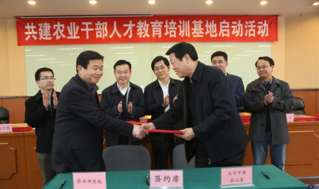 从即日起,北京新发地农产品批发市场等20家遍及北京11个区的现代农业示范单位将成为农业干部人才教育培训基地。3月17日下午,农业部党校与中共北京市委农村工作委员会举行共建仪式,签署北京地区农业干部人才教育培训基地共建意向书,并为20家基地授牌。农业部人事劳动司副司长潘学峰,农业部党校常务副校长蒋协新,北京市委农工委副书记刘福志出席共建基地启动活动。