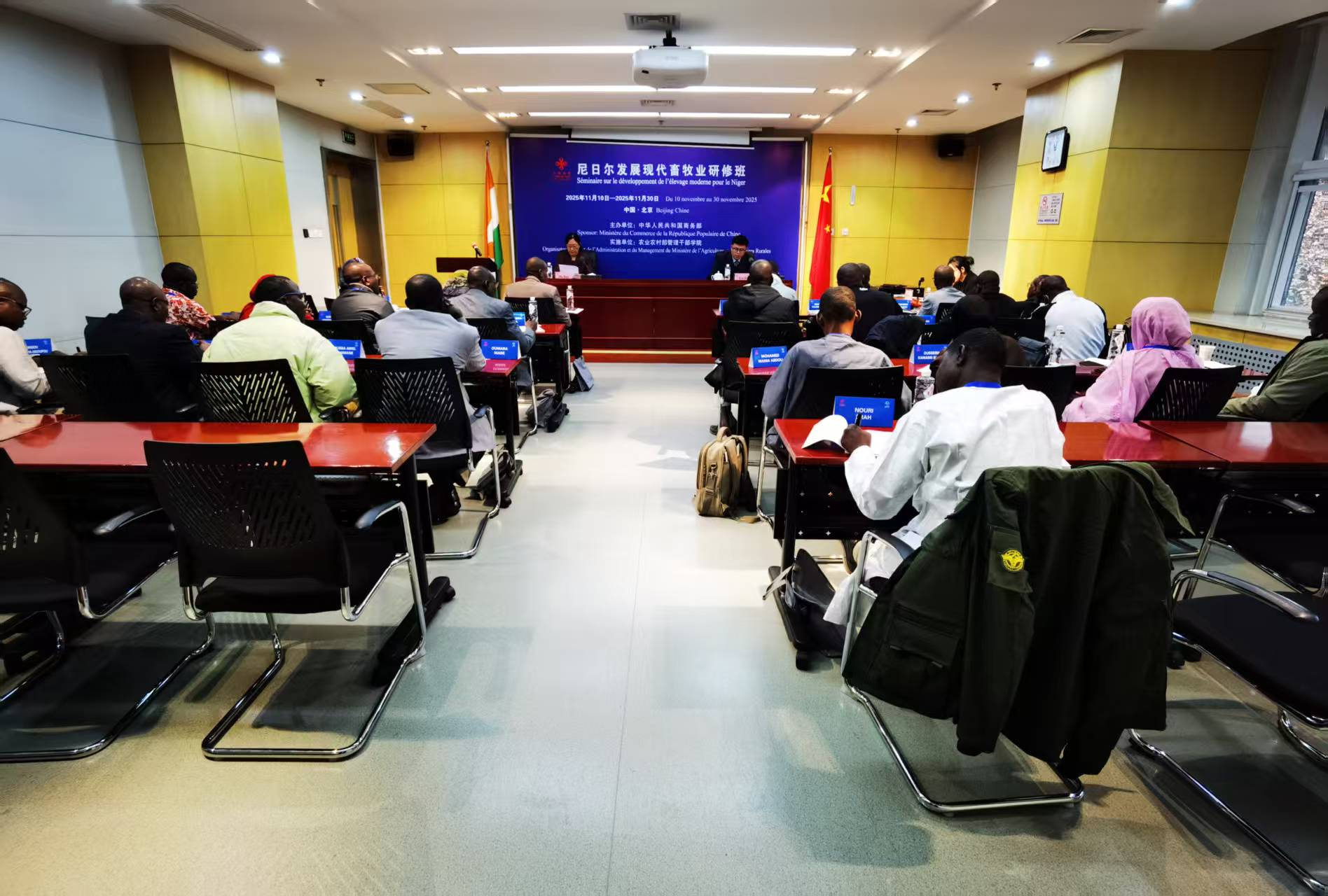 由商务部主办、我院承办的“尼日尔发展现代畜牧业研修班”于11月10日在我院举行开班仪式。学院墨丹副院长出席并致辞。来自尼日尔的24名农业和畜牧部官员参加研修班学习。