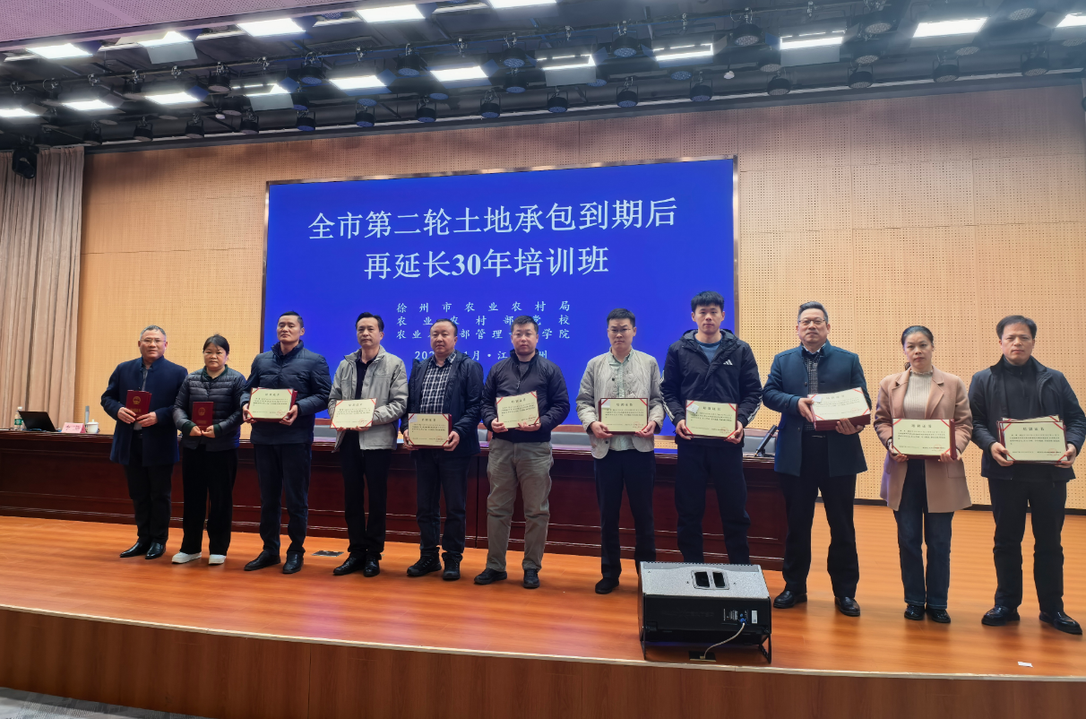 为深入贯彻党的二十大和二十届三中、四中全会精神,落实2025年中央一号文件、江苏省委省政府关于第二轮土地承包到期后再延长30年试点工作部署要求,全面提升徐州市土地延包试点工作能力,受徐州市农业农村局委托,我院于2025年11月23日至25日在徐州市成功举办全市第二轮土地承包到期后再延长30年试点业务培训班。来自徐州市各县(市、区)农业农村部门分管负责同志、具体负责同志,各试点镇分管负责同志、农经中心负责同志,以及各试点村具体负责同志,共计200余人参加了培训。培训旨在帮助一线干部准确把握政策方向、熟悉操作流程,确保第二轮土地承包到期后再延长30年试点工作高效推进。