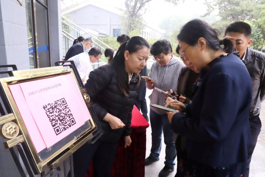 扫码答题区吸引一百多名教职员工参与,12道题涵盖世界粮食日历史、粮食安全知识、食材节约技巧等内容,既具知识性又富趣味性,参与答题的教职员工们在轻松的答题氛围中加深粮食知识的了解。