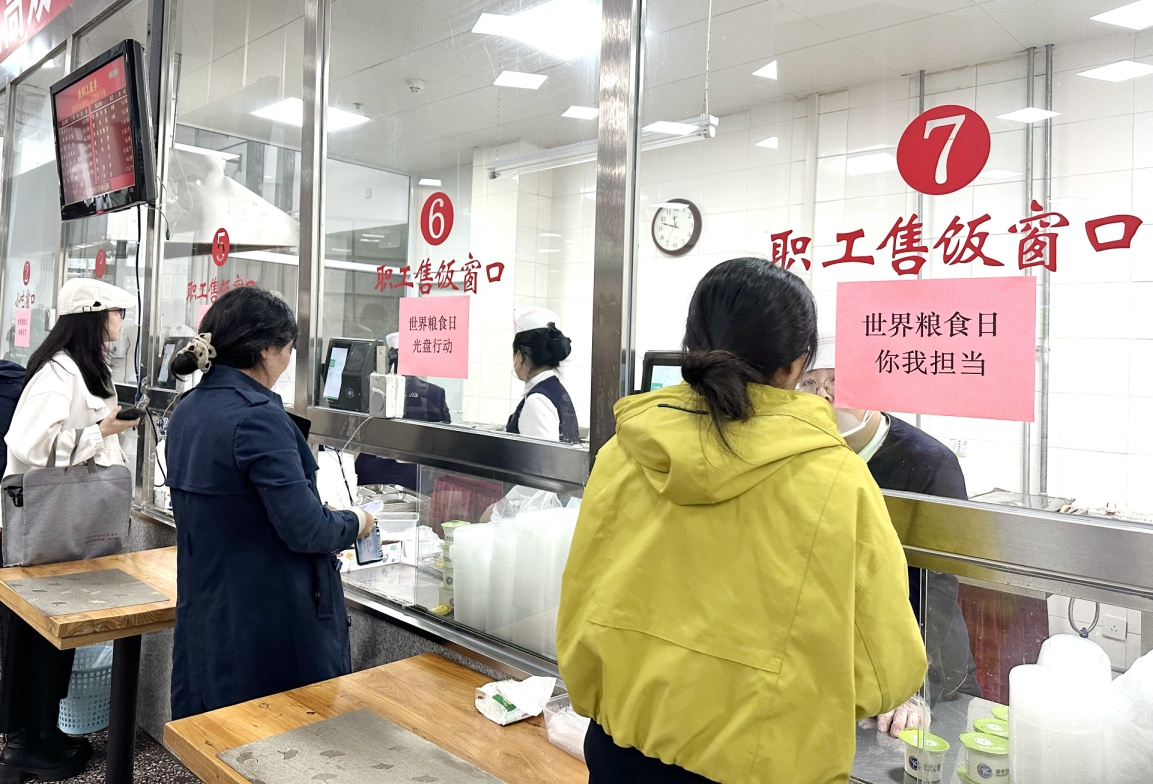 学苑餐厅的售饭窗口也换上了“新装”。“禾下有梦、食粮有节”等宣传口号被精心粘贴在窗口处,一句句简洁有力的话语,时刻提醒着大家珍惜粮食,将节粮意识融入用餐的每一个环节。