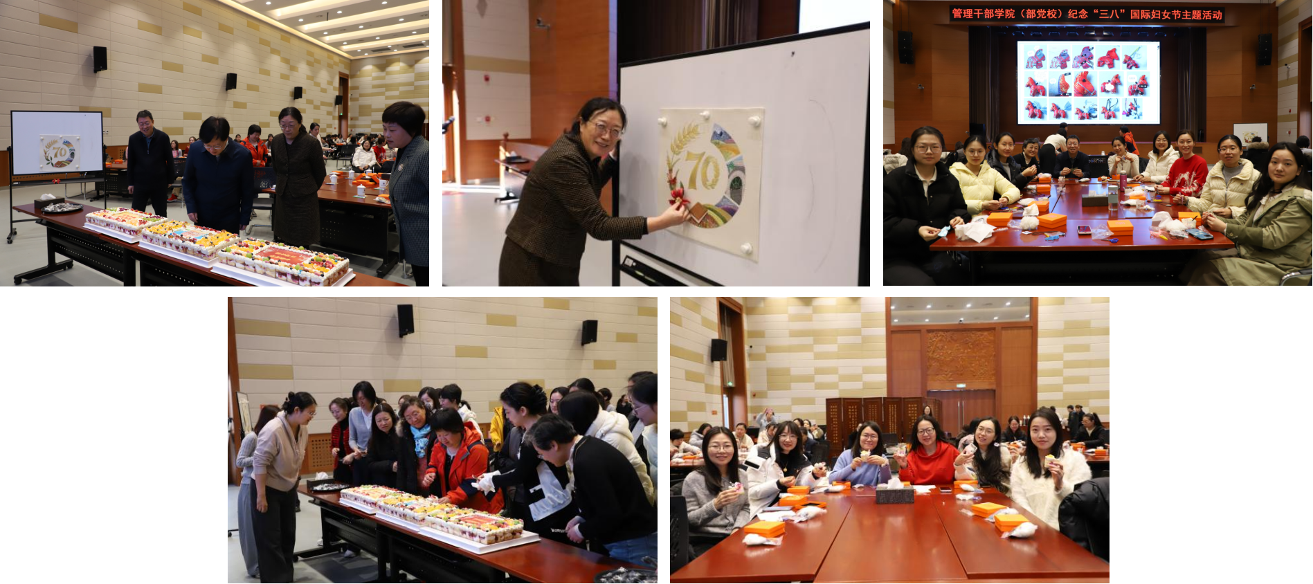 活动上,全体人员共同观看了“我为校院送祝福”视频合集。40余名校院职工跨越山海在全国各地为校院献上美好祝愿。在过集体生日环节,女职工们共享节日蛋糕,共织建院70周年主题布接画,为校院高质量发展织绘美好画卷,现场洋溢着温馨与感动。