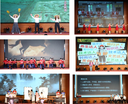 舞台亮起,背景屏幕播放着老一辈农垦人辛勤开垦的画面,手捧花篮的合唱团用欢快的《南泥湾》为展演开启崇农篇章。《旗开得胜》节目红旗猎猎、身姿飒爽。曾在“志愿宣讲”中种下爱农种子的人大附中昌平学校的孩子们,将二胡合奏曲《赛马》演绎得淋漓尽致。《沃野丹心--乡村产业振兴礼赞》讲述着沃土孕育的希望和产业承载的梦想。小品《账本里的光阴》、《合二代的“新农活”》,用生动的表演对比“今时”与“往日”,展现出校院人一以贯之的严谨坚守和新时代“新农活”的勃勃生机。舞蹈俱乐部将京腔京韵与古典舞相融合,带来极具观赏性的创新表演,展现“三农”人的诗意与浪漫。改编后的歌曲《一路生花》和《New Boy》唱出青春的跃动。情景剧《小服务里的大担当》以学员参训真实故事为蓝本,再现平凡服务岗位上不平凡的细致与温暖。《城市达人乡村寻“宝”》则以活泼细腻的笔触,勾勒出城乡融合的鲜活图景,描绘出乡村振兴的美好画卷。舞台上《墨韵筝声贺华章》笔锋不停、筝音绕梁,墨色氤氲彰显尚学初心,弦音流转可见丹心不改。